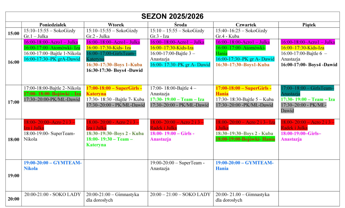 Zapraszamy do zapoznania się z Naszym harmonogramem zajęć.